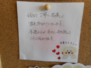 当校では、お客様が卒業する際に、感想を伺っております